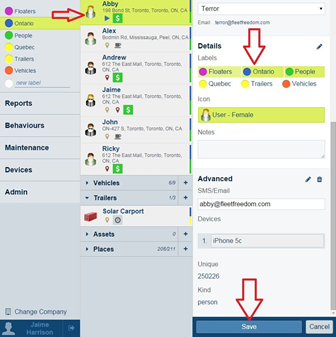 1. Sélectionnez la personne, le véhicule, la remorque, le bien ou le site d’intérêt auquel vous désirez attribuer ou retirer une étiquette.